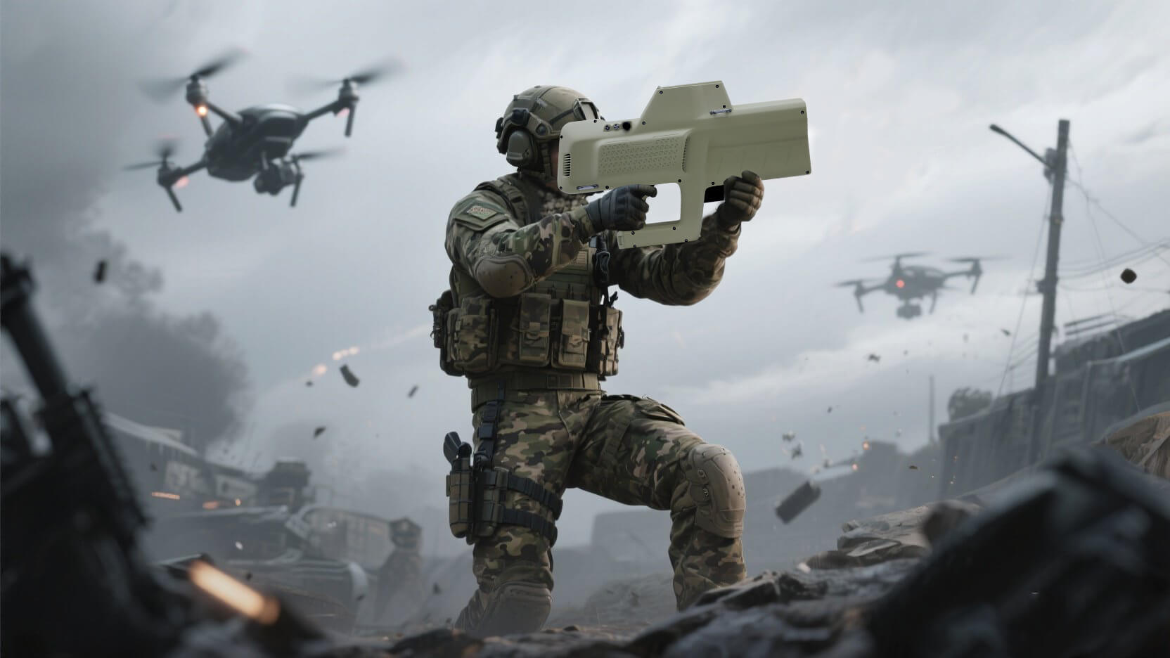 Wideband detection modules can detect multiple drone remote control signals; the controller then matches corresponding frequencies and jamming codes for different jamming units. It adapts to multi-drone, multi-frequency scenarios and enables dynamic resource allocation.